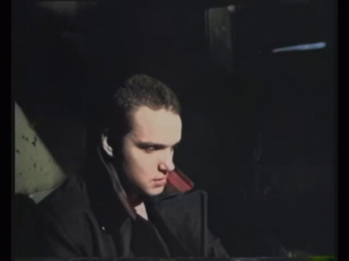 Sergey Epifantsev in a scene from the cult Russian film 'The Green Elephant', sitting in a dark, gritty setting.