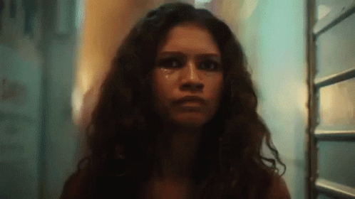 Zendaya, portraying Rue from Euphoria, shows a raw emotional moment with a tear rolling down her face.