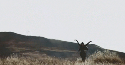 Dakooka's silhouette against a vast field and mountain landscape, embodying freedom and independence.