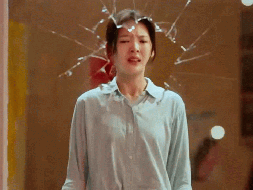 Zhang Ruonan is seen crying with a distressed expression, with shattered glass effects around her head.