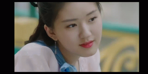 Zhao Lusi smiles shyly and covers her face, wearing traditional attire with red lipstick.