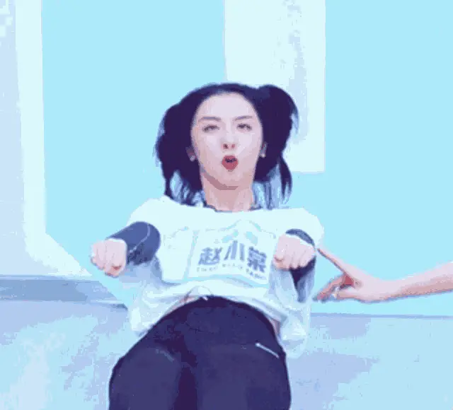 Zhao Yue of SNH48 cheering enthusiastically with a group of young women, smiling and raising hands.