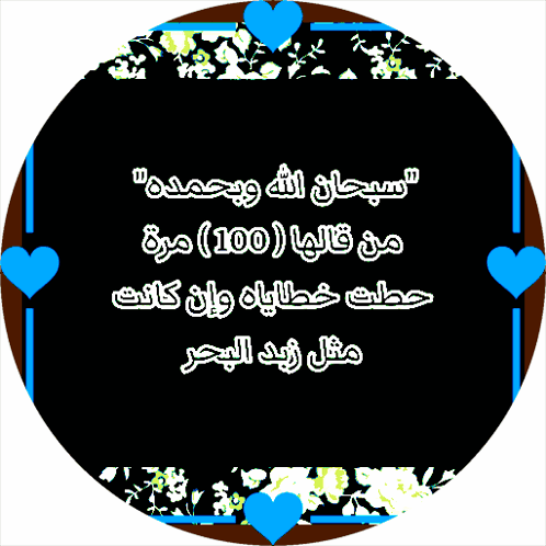 A beautiful black circle with Arabic religious text 'Subhan Allah wa bihamdihi' and blue hearts, surrounded by floral patterns.