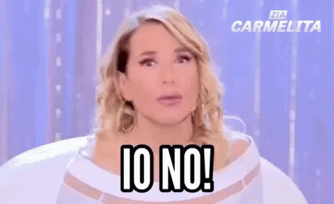 Italian TV personality Barbara D'Urso, also known as Zia Carmelita, emphatically says 'IO NO!'