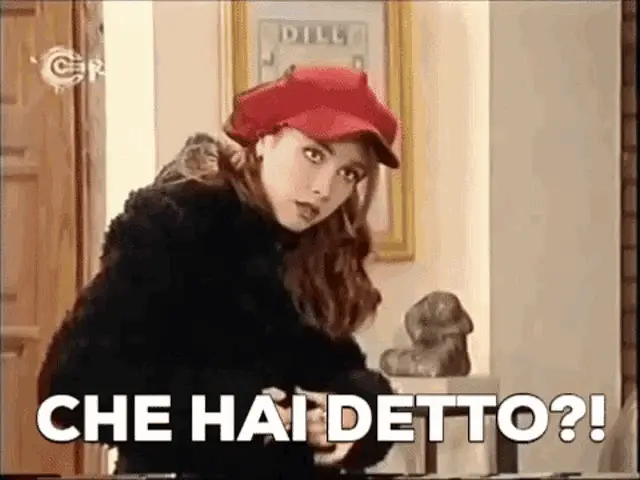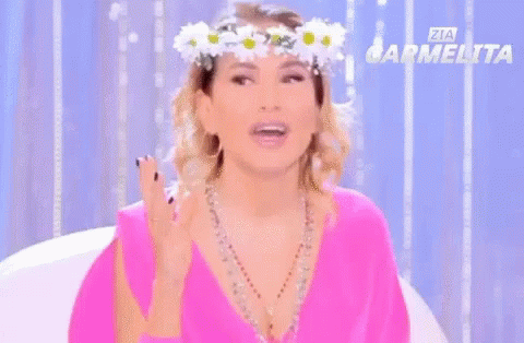 Zia Carmelita, wearing a flower crown, exclaims 'C'ha itt? Aspett' on the Italian show Pomeriggio5.