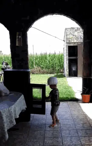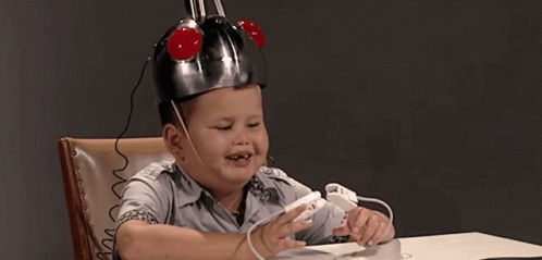 A young boy, Wilco, wearing a unique helmet and holding a controller, possibly for a lie detector game, related to Zas.