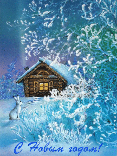 Зимняя, новогодняя открытка с зайцем