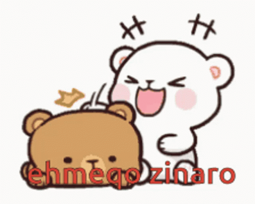 Milk and Mocha bears Zinar Ehmeq playfully punching another bear, a cute animated moment.