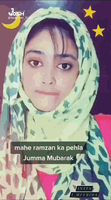 Ziya, wearing a green hijab, smiles and wishes 'Mahe Ramzan ka pehla Jumma Mubarak'.