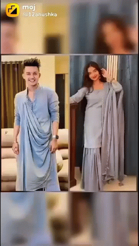 Ziya and partner in a vibrant display of matching traditional Indian outfits, showcasing various coordinated styles.