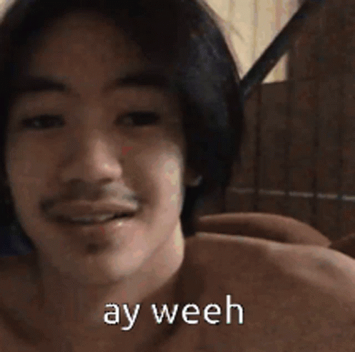 Zkyummy, a man with long hair and a mustache, smiles and laughs, showing braces, with the caption 'ay weeh'.