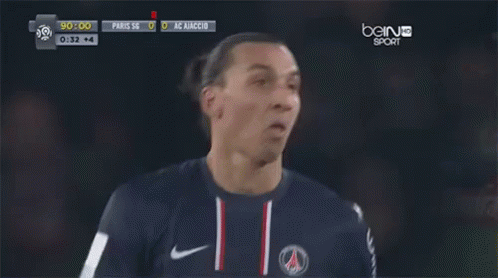 Zlatan Ibrahimovic looks visibly annoyed during a PSG soccer match against AC Ajaccio, with the score tied 0-0.