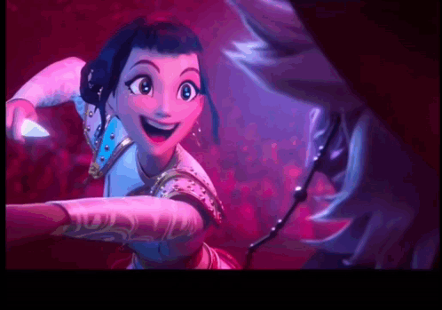 Zoey from Kpop Demon Hunter expresses herself with a smile and a change in demeanor.