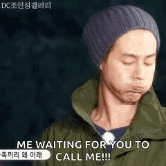 Jo In-sung puffs his cheeks, looking exasperated while waiting for a call, wearing a beanie and green jacket.