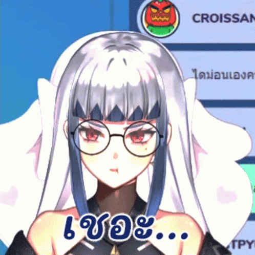 Anime girl with silver hair and glasses, showing a serious expression with Thai text 'Hmph...' and 'CROISSAN' in the background.