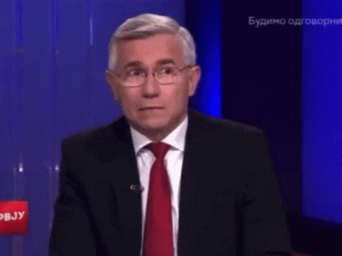 Zoran Stanojevic, wearing a suit and red tie, looks at the camera against a blue background on RTS.