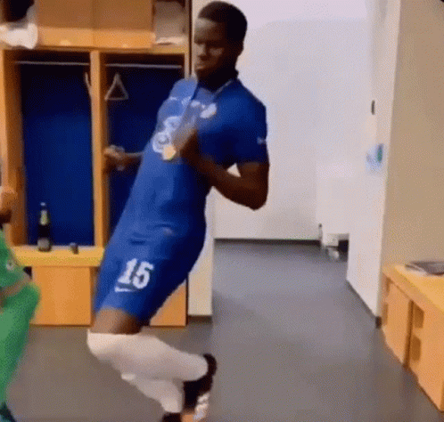 Chelsea players Kurt Zouma and Jorginho celebrate their Champions League victory with a dance in the locker room.
