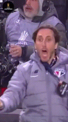 A man, likely Zubeldia, animatedly coaching for São Paulo FC.
