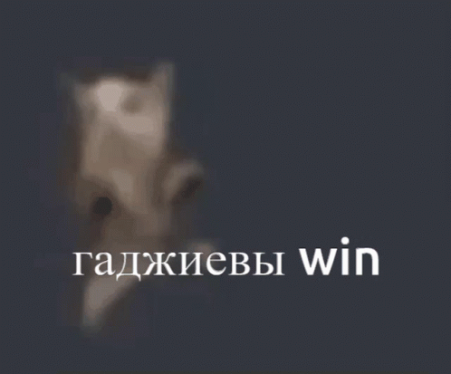 A blurry, animated cat-like figure dances with the Russian text 'Gadzhievs win' displayed below.
