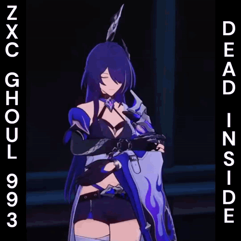 Acheron from Honkai Star Rail with 'Dead Inside' text, featuring a hair color change.