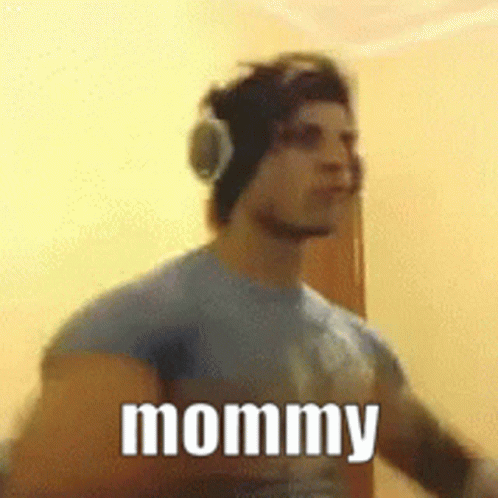 Zyzz, a bodybuilder, wearing headphones and flexing his muscles while the word 'mommy' is displayed.