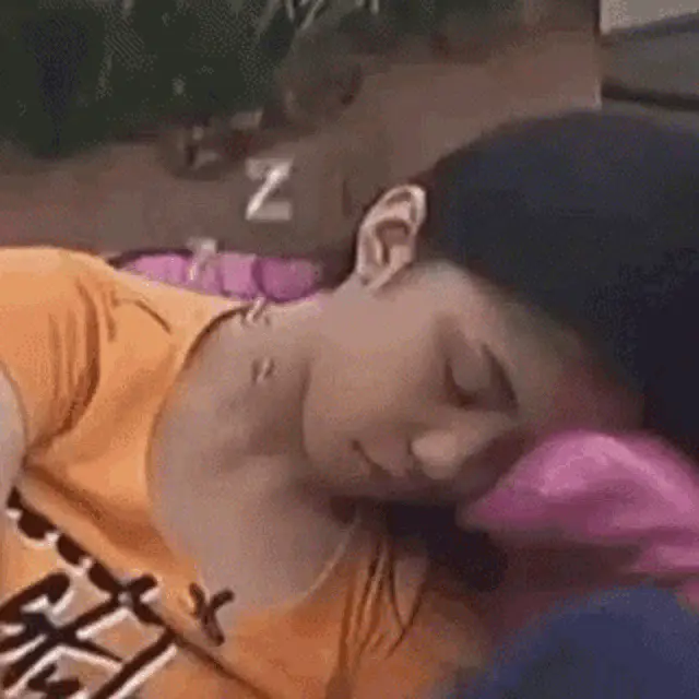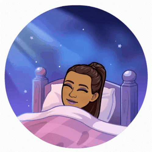 An animated cartoon girl with a ponytail sleeps soundly in her bed under a starry night sky.