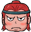 Pixel art sticker of an angry character, identified as 000zzzzuuuu, wearing a distinctive red helmet with a visor.