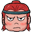 A pixel art sticker of 000zzzzuuuu, a character with a red helmet and an intensely angry, scowling face.