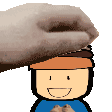A cartoon hand holds the blocky head of the Roblox character 'Forsaken' from '007n7', a popular in-game item.