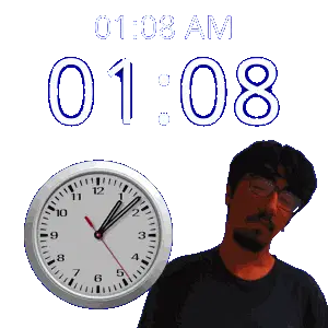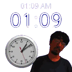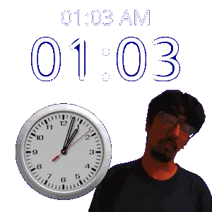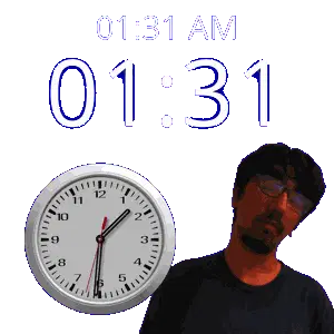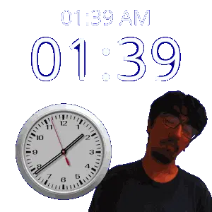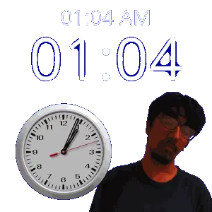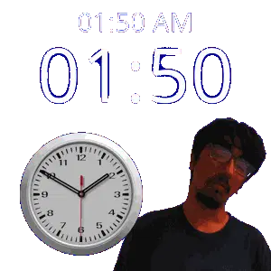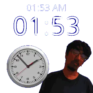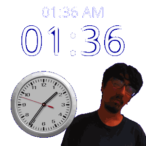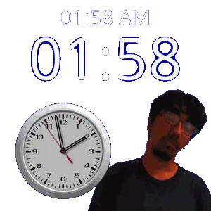 a man stands in front of a clock that says 1:36 am