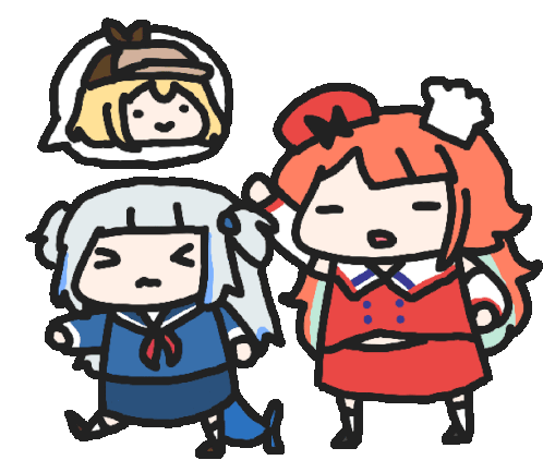 An animated sticker featuring two cute cartoon girls standing together, one wearing a stylish hat.