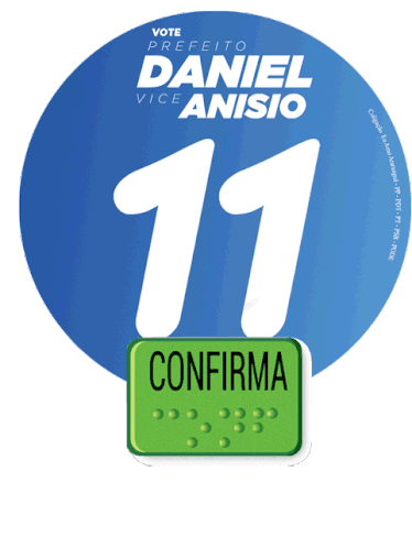 Political campaign sticker for Daniel (Mayor) and Anisio (Vice) in Araranguá, Brazil, with the number 11 and a 'Confirma' button.