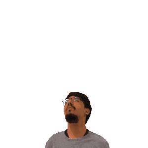 a man with glasses and a beard is looking up at the number 20