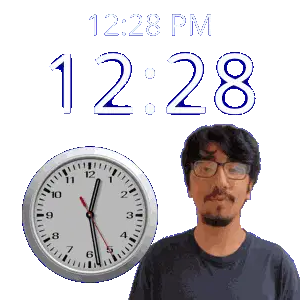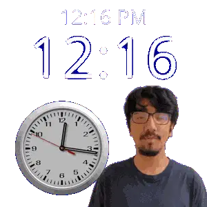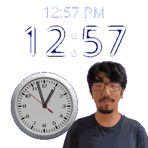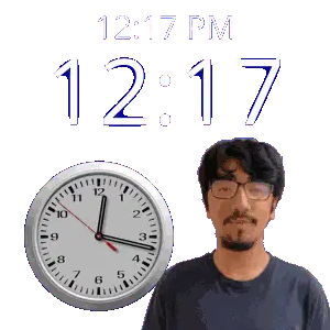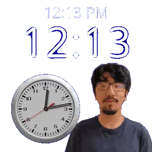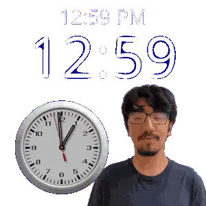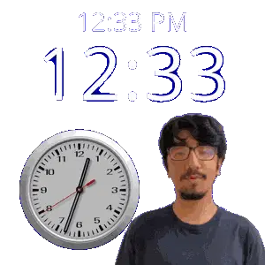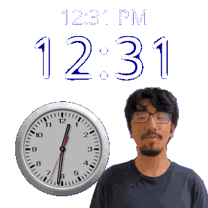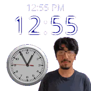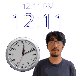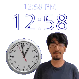 a man stands in front of a wall clock that says 12:31 pm