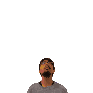 a man looking up at the number 14 with stars coming out of it