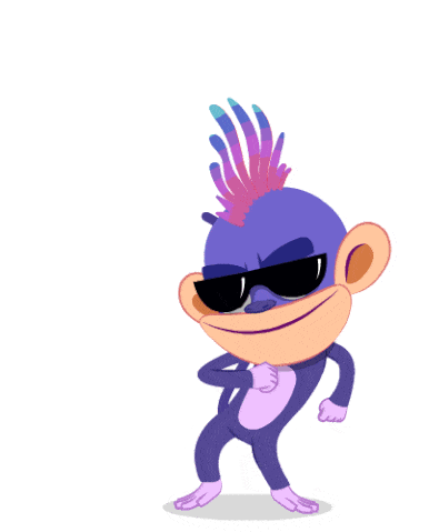 A cool purple monkey character with sunglasses and a vibrant mohawk strikes a pose, perfect for a party sticker.