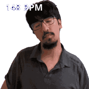 a man with glasses and a beard has 148 bpm written on the bottom
