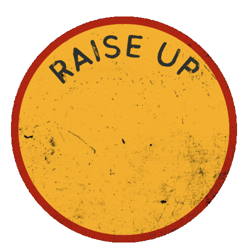 Animated sticker featuring multiple fists raising up against a 'RAISE UP' sign, symbolizing protest and the fight for a fair wage.