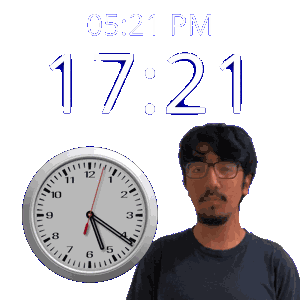 a man with glasses stands next to a clock that says 1721