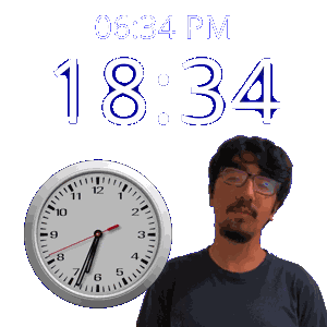 a man stands next to a clock that says 1834