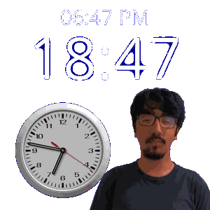 a man stands in front of a clock that says 1847