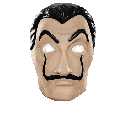 A Money Heist (La Casa de Papel) Dalí mask with glowing eyes, featuring the date 19.07.2019. Perfect for save the date reminders.