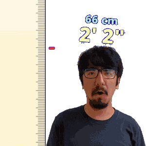 a man is measuring his height with a ruler