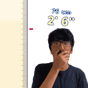 a man is measuring his height with a ruler that says 76 cm 2 ' 6 '