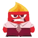 Angry character Anger from Inside Out with fiery head, white shirt, and tie, expressing intense rage.