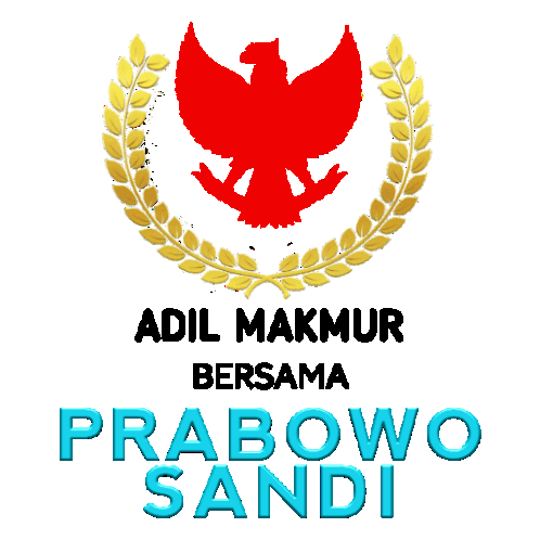 Animated sticker featuring the 2019 Indonesian presidential campaign slogan 'Adil Makmur Bersama' with Prabowo Sandiuno.