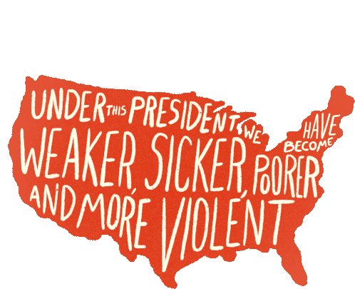 A 2020 election sticker featuring a US map and a critical statement about the presidency, referencing Joe Biden and Donald Trump.