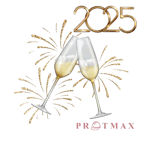 Two champagne glasses clink together in a festive toast, celebrating the arrival of Happy New Year 2025.