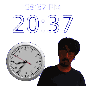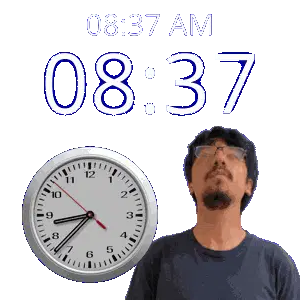 a man stands in front of a clock that reads 20:37 pm