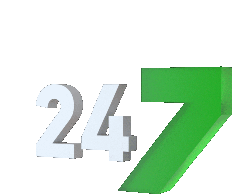 Animated sticker featuring the numbers 24/7, representing continuous service for gasfiter and plumber needs.